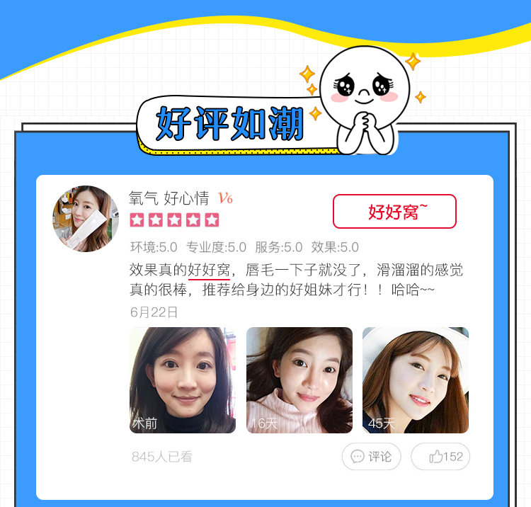 【激光脱毛】【脱唇毛/腋毛】私信即送水光/除皱 二选一 拯救来自猩猩的你·超值特惠6次