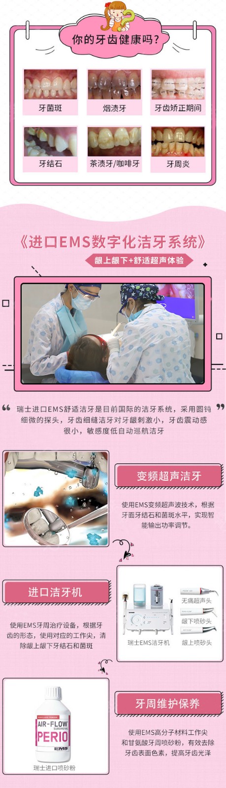 【超声波洁牙】EMS超声波VIP喷砂洁牙套餐