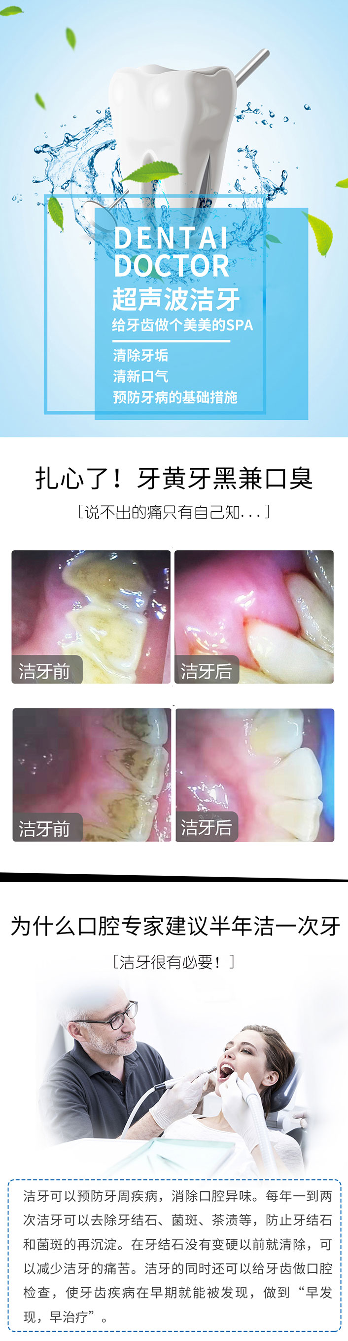 【单人】超声波洁牙+清新口气+祛除牙结石+SPA享受